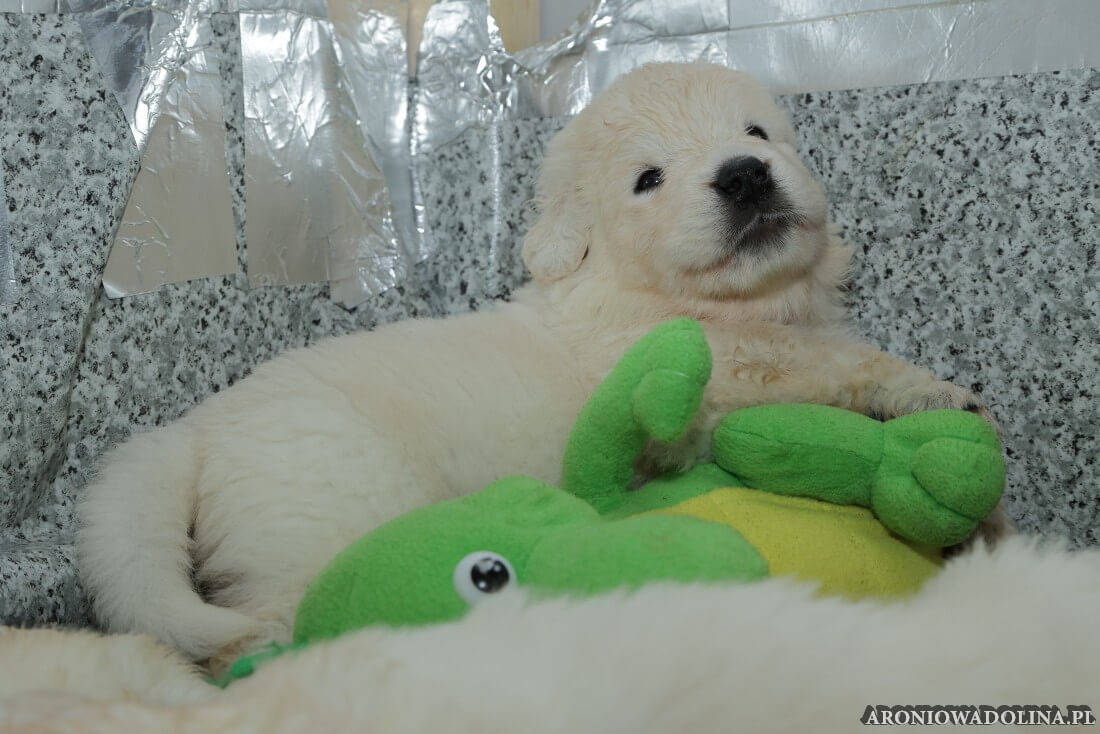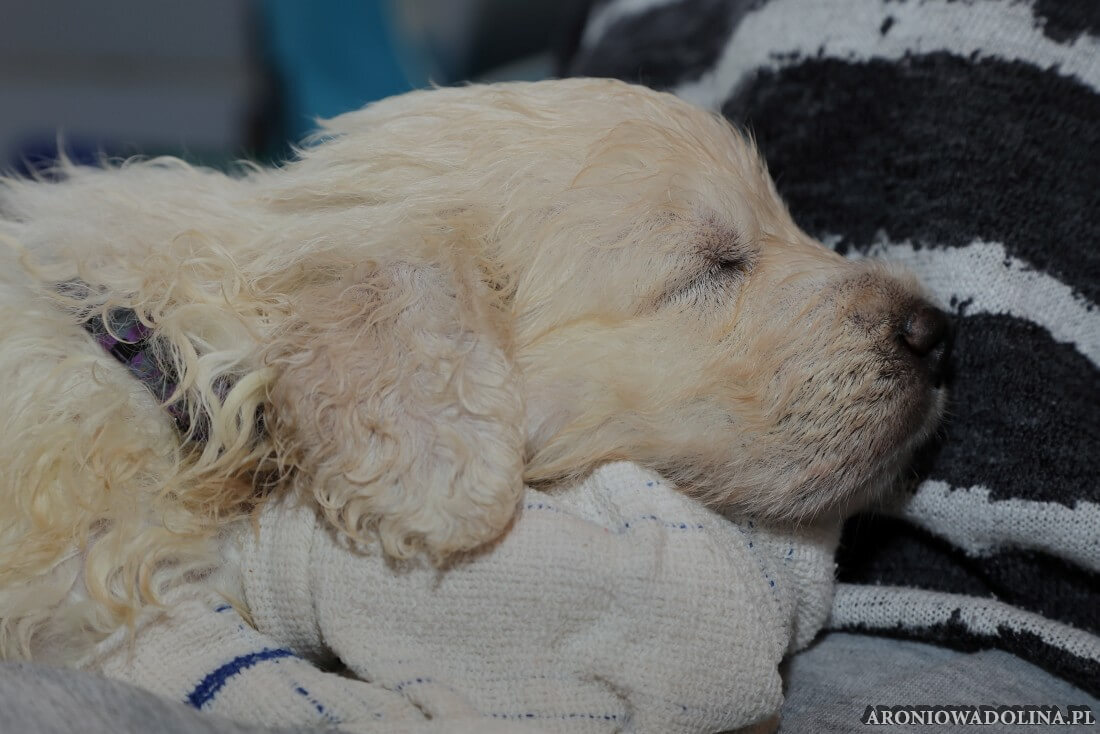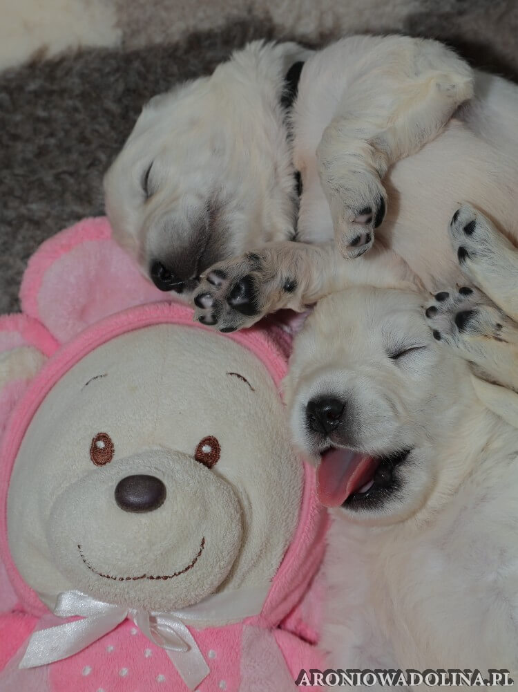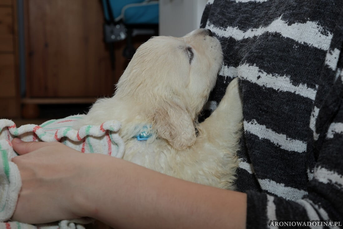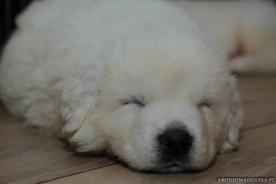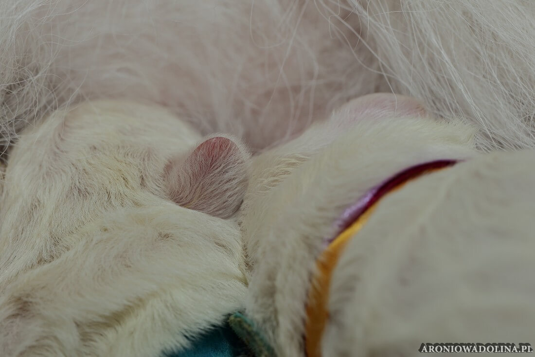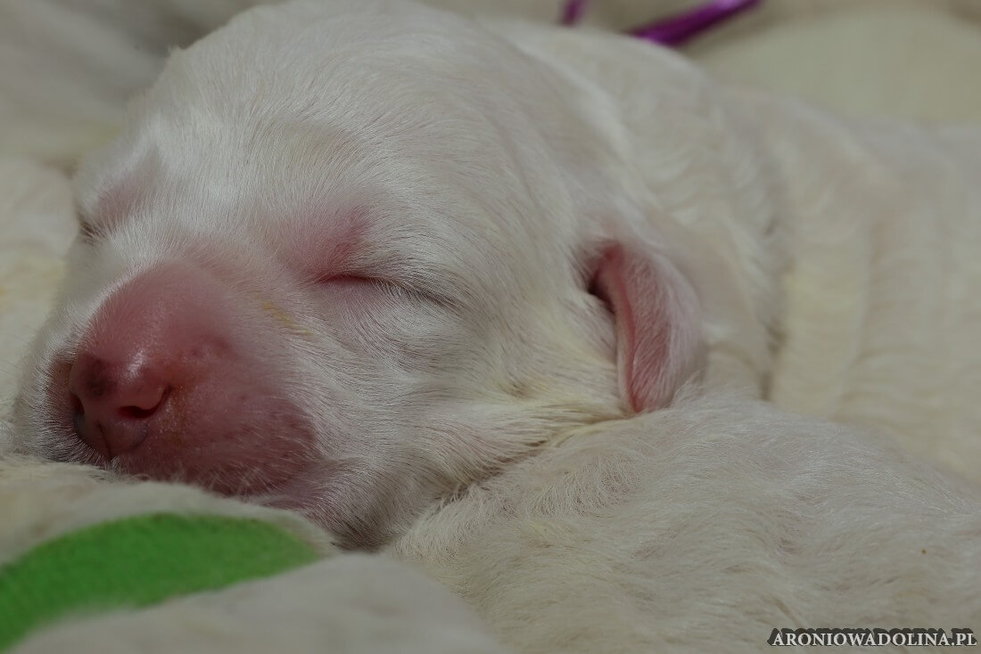 W tym czasie szczeniaki owczarka podhalańskiego głównie śpią, budzą się żeby zjeść i załatwić i znowu śpią. Piwonia okazała się bardzo czułą mamą, wylizuje maluszki, zwłaszcza brzuszki i 4-literki, ponieważ samodzielnie jeszcze nie potrafią uruchomić swoich kiszeczek. Pod koniec tego okresu szczeniaczki zaczynają lekko otwierać oczka, próbują niezdarnie chodzić na łapkach, niektóre już poszczekują. Wybarwiają się im noski. Codziennie sprawdzamy wagę maluszków żeby kontrolować ich prawidłowy rozwój. Obcinamy pazurki żeby nie raniły Piwonii w trakcie karmienia (w odróżnieniu od kotków, pieski nie potrafią ich chować). I tak wchodzimy w 3. tydzień życia.