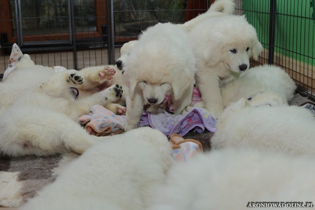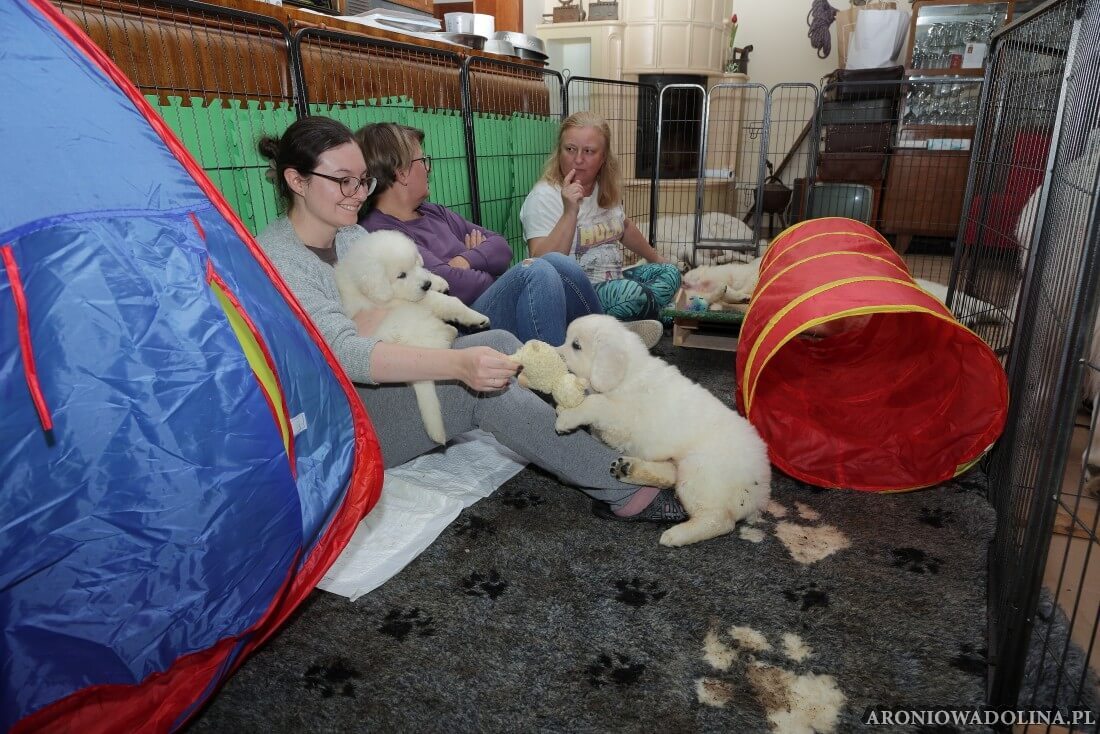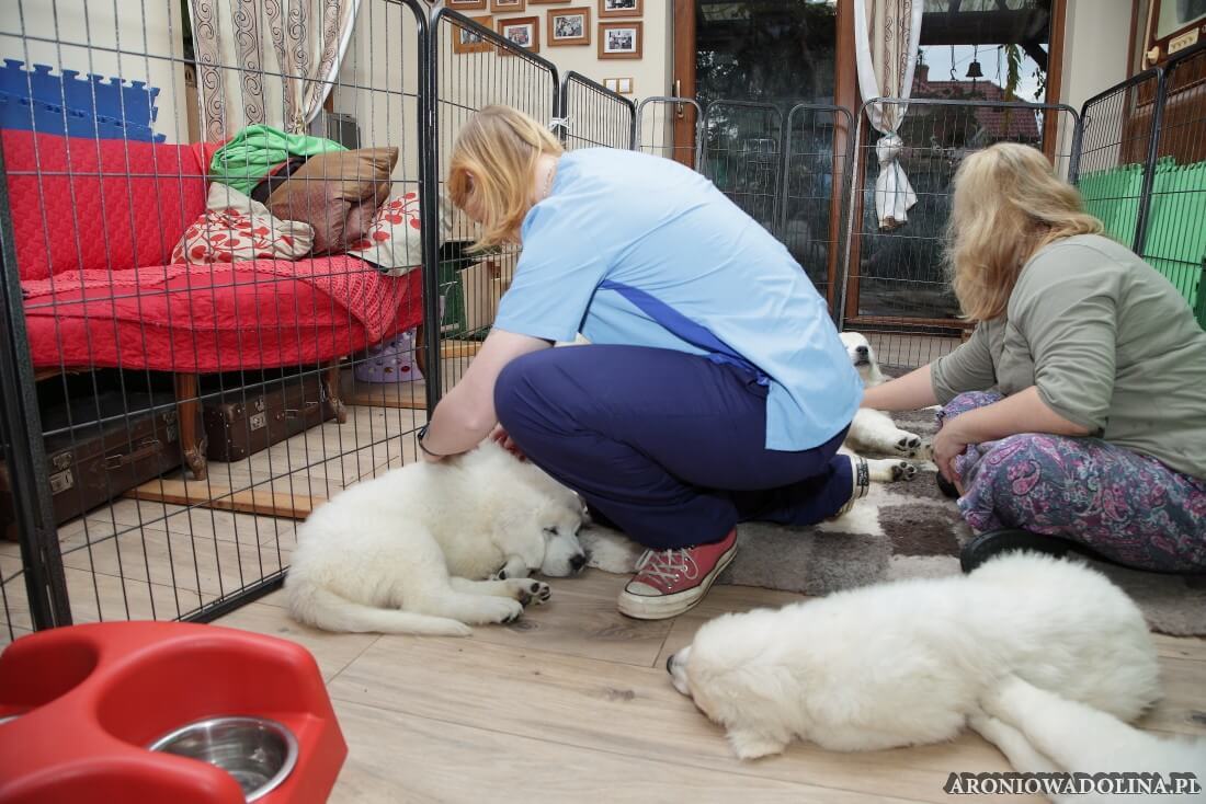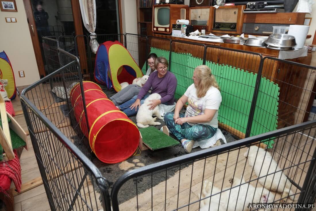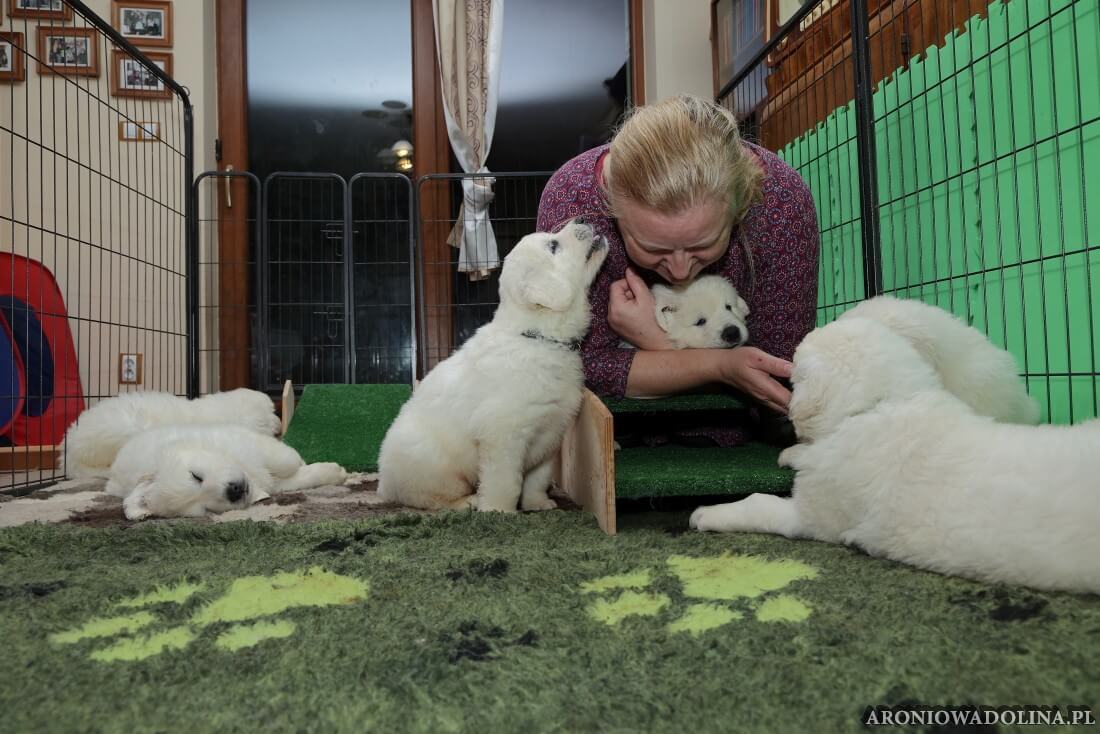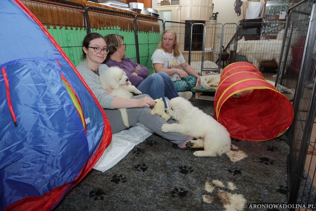 Każdy zainteresowany może zapoznać się z warunkami, w jakich żyją szczeniaczki i Piwonia – hodowlę prezentujemy na stronie aroniowadolina.pl i na kanale You Tube TUTAJ, Piwonię w zakładce PIWONIA. Przyszłym właścicielom służymy radą i pomocą w wychowaniu szczeniąt.