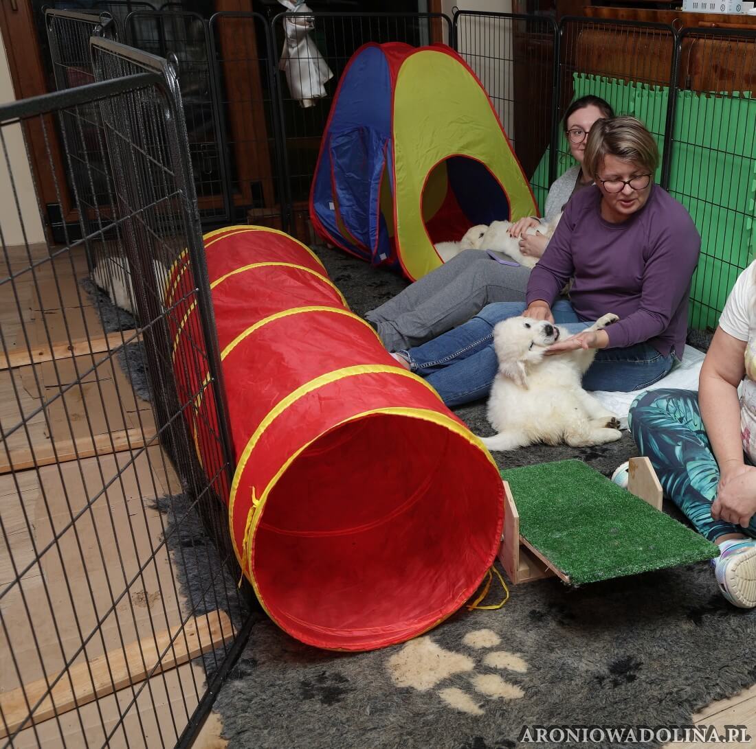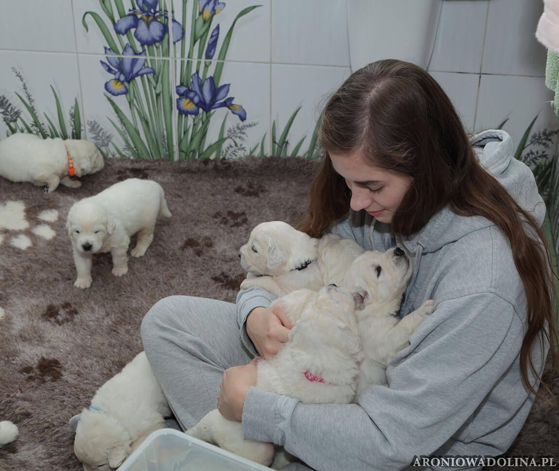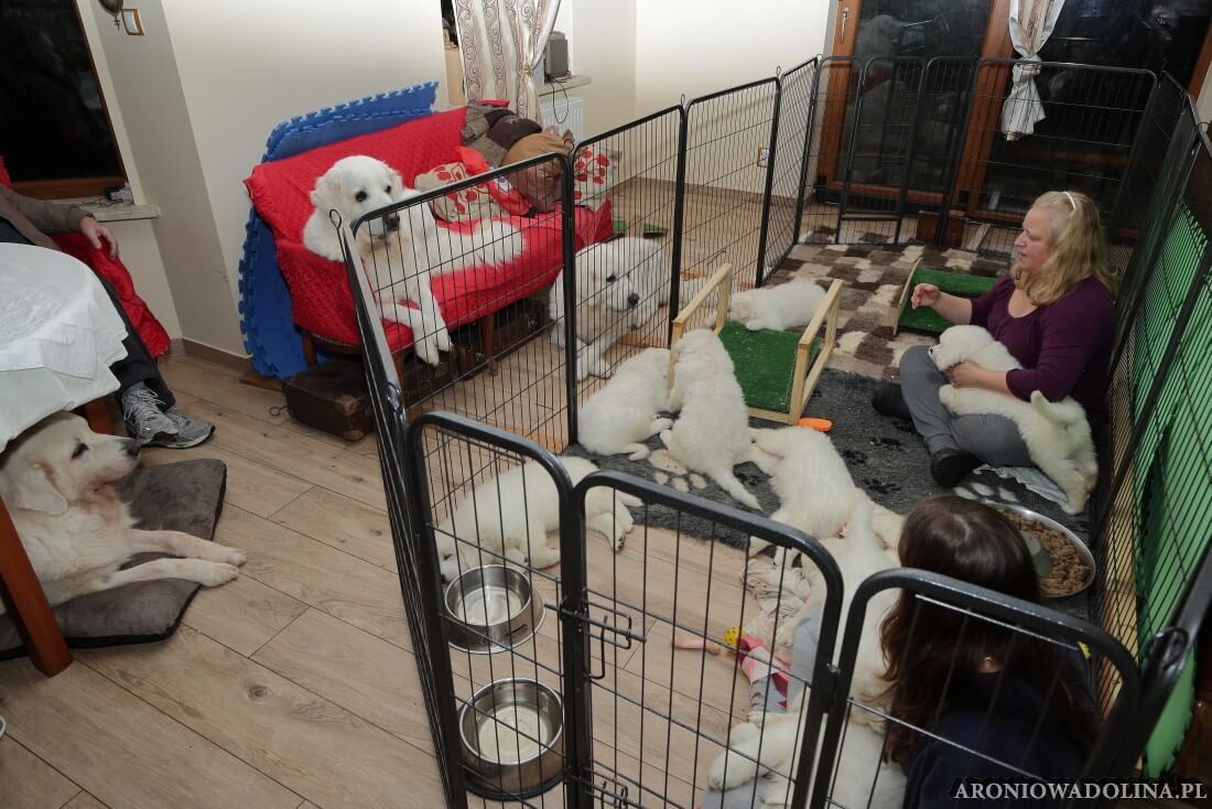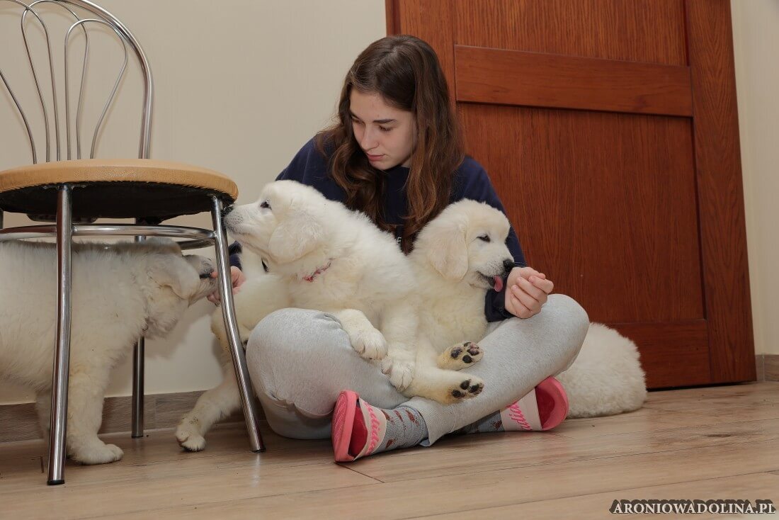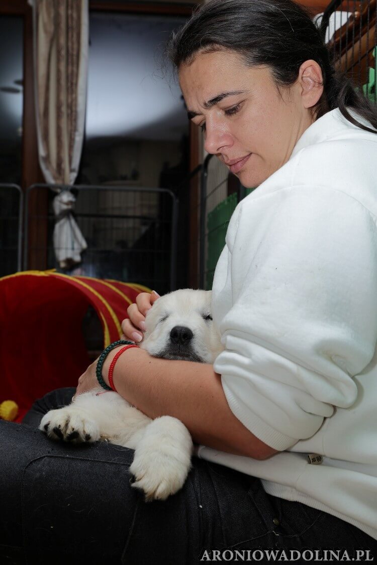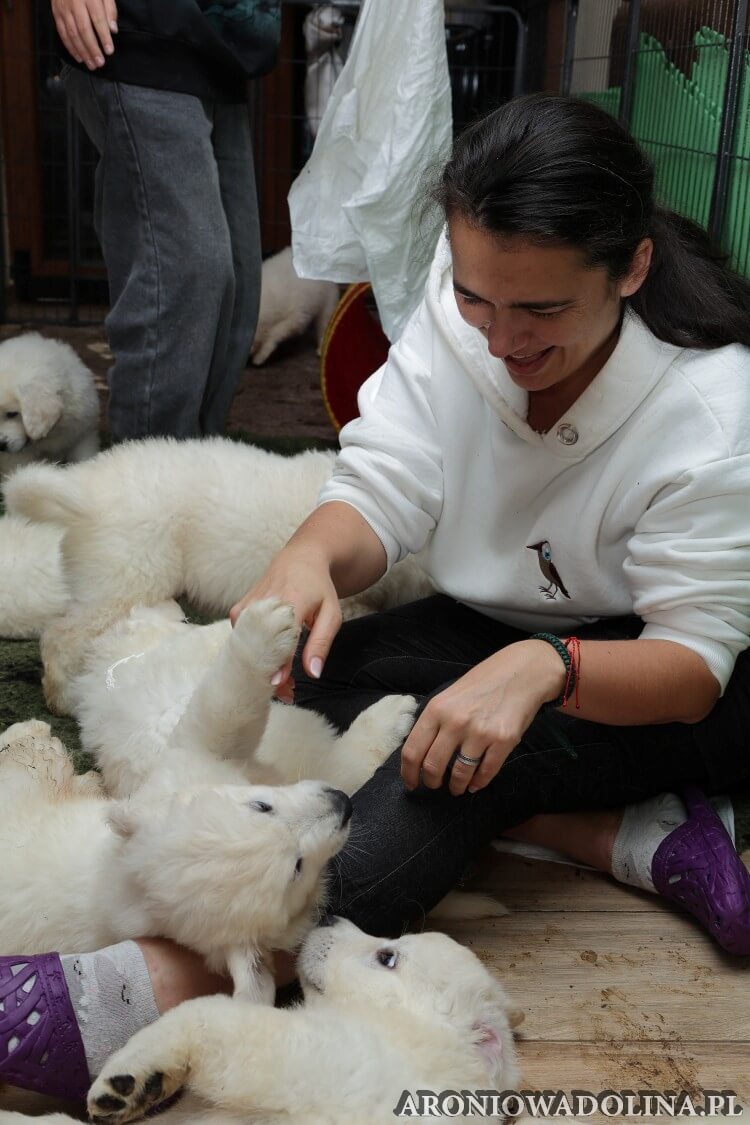 Każdy zainteresowany może zapoznać się z warunkami, w jakich żyją szczeniaczki i Piwonia – hodowlę prezentujemy na stronie aroniowadolina.pl i na kanale You Tube TUTAJ, Piwonię w zakładce PIWONIA. Przyszłym właścicielom służymy radą i pomocą w wychowaniu szczeniąt.