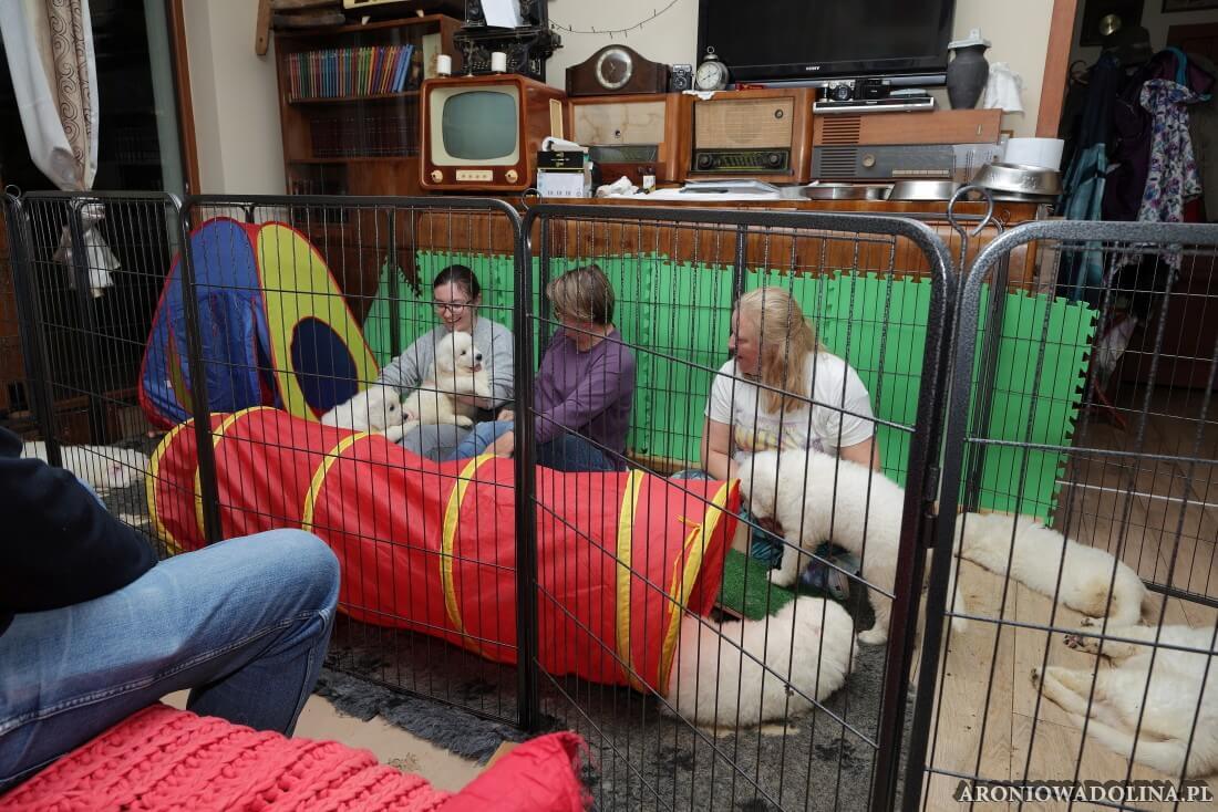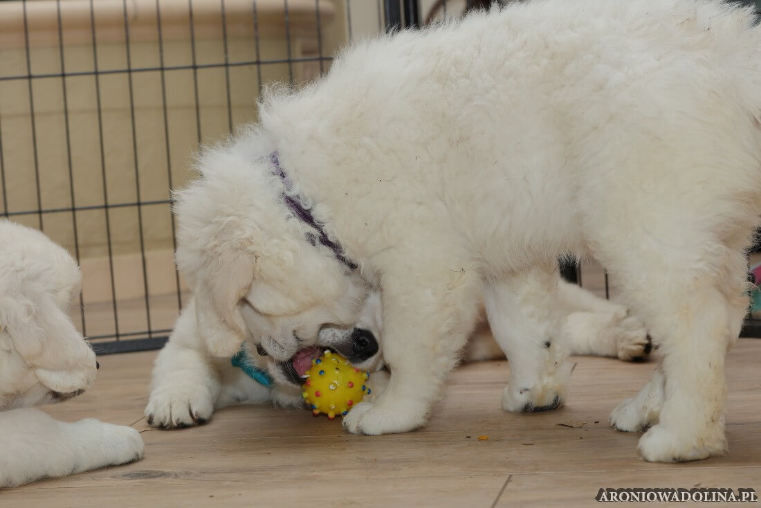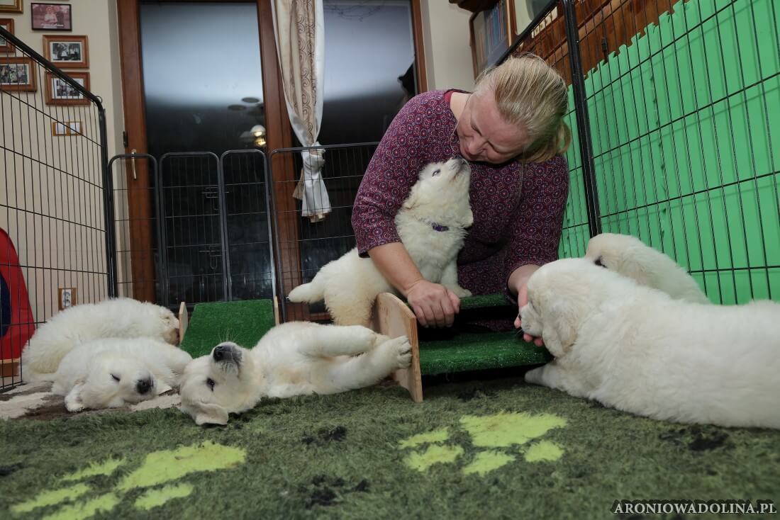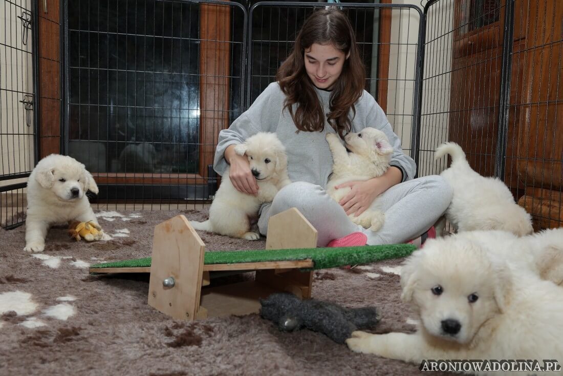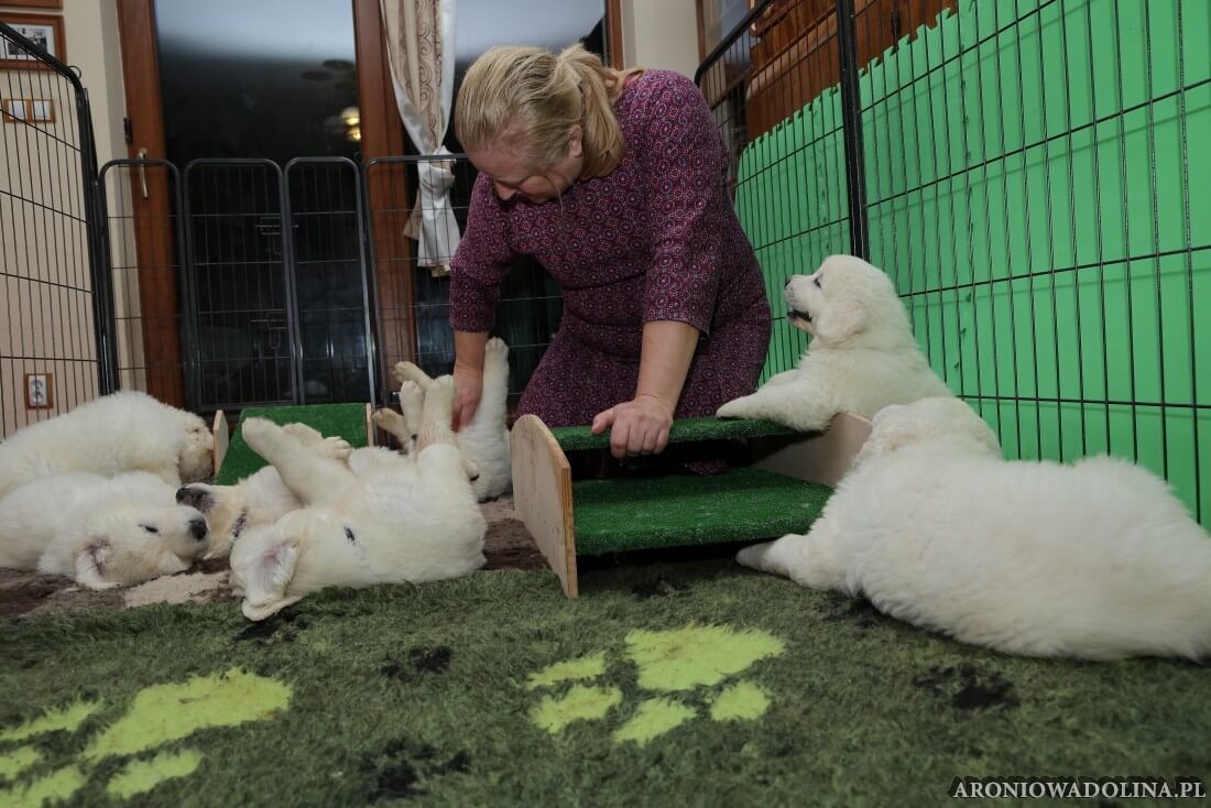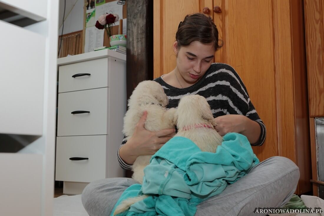 Każdy zainteresowany może zapoznać się z warunkami, w jakich żyją szczeniaczki i Piwonia – hodowlę prezentujemy na stronie aroniowadolina.pl i na kanale You Tube TUTAJ, Piwonię w zakładce PIWONIA. Przyszłym właścicielom służymy radą i pomocą w wychowaniu szczeniąt.