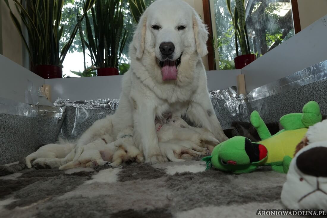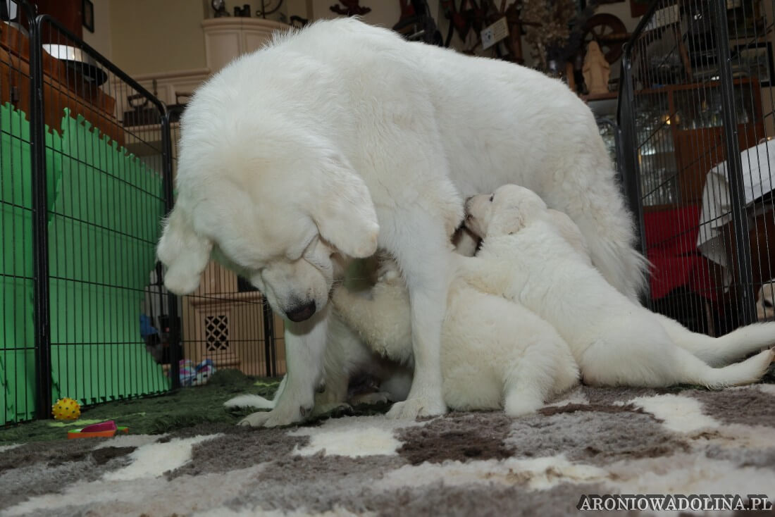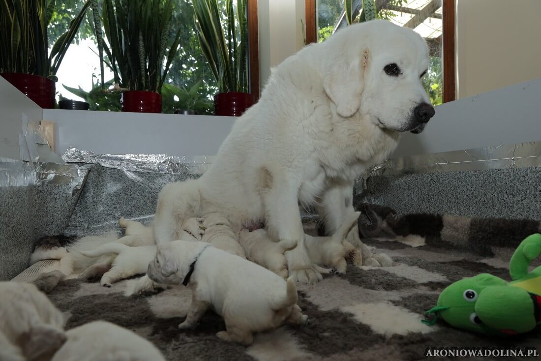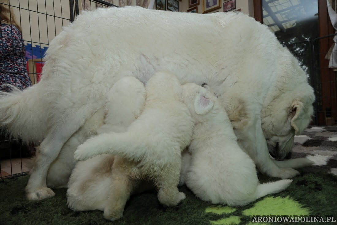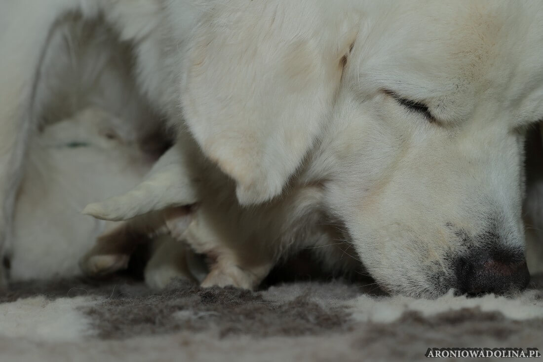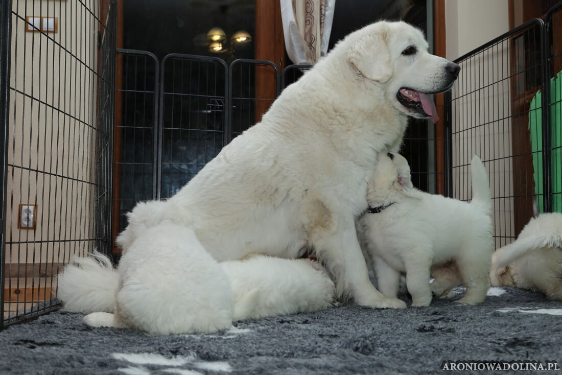 Miło nam poinformować, że nasz owczarek podhalański PIWONIA Aroniowa Dolina (FCI) urodziła 18.09.2025 r. szczeniaczki i jest szczęśliwą mamą. Wszystkie osoby zainteresowane zapraszamy do rezerwacji/zakupu szczeniaczków pod nr telefonu 608 292 931 lub 679 925 060. Piwonia to niezwykle mądra, nieufna, poważna (bo że śliczna, jak dla nas, to widać na zdjęciach i w naturze), o mocnej kości, zrównoważonym charakterze młoda sunia. Więcej informacji o Piwonii znajdą Państwo w zakładce PIWONIA. Tatą jest ORZECH z Doliny Kościeliskiej (FCI). Opis Orzecha znajduje się w zakładce SZCZENIAKI. Cały miot będzie się zaczynał na literę „R”. Osoby, które dokonają rezerwacji przed znakowaniem szczeniąt (czip) będą mogły nadać imię swojemu pieskowi, które zostanie wpisane do metryki.