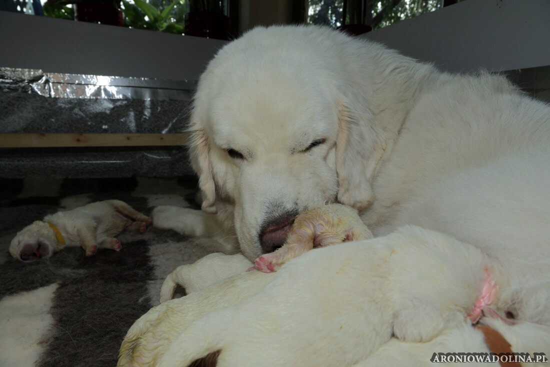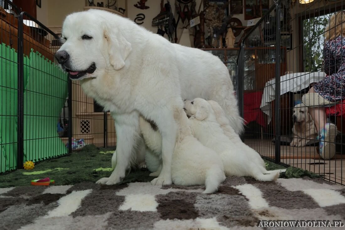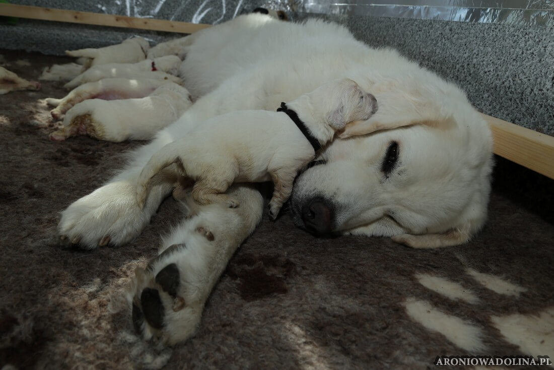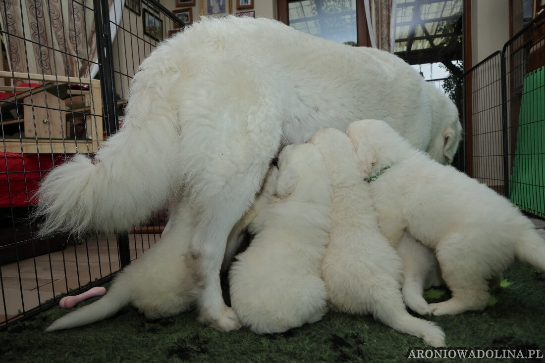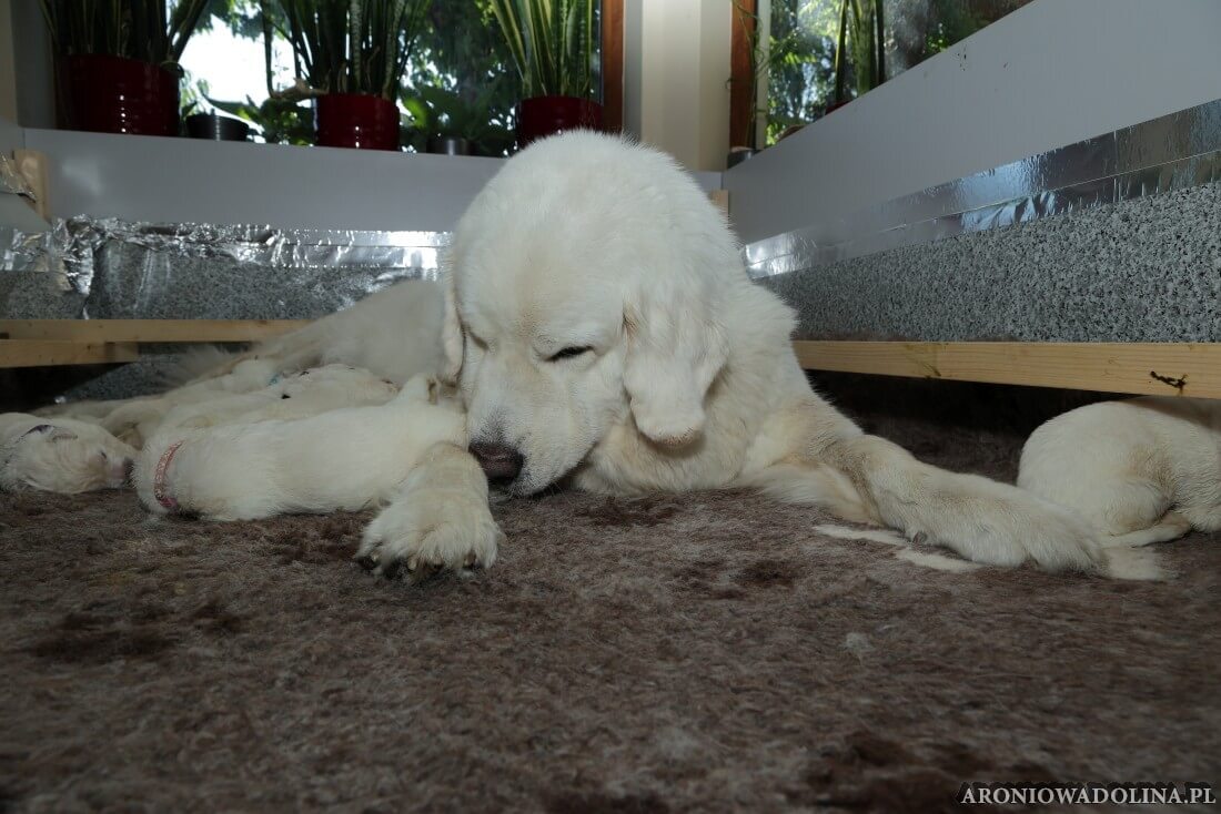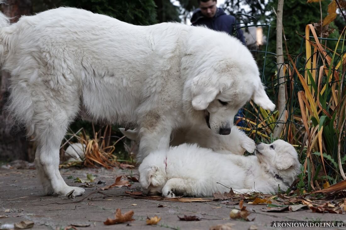 Miło nam poinformować, że nasz owczarek podhalański PIWONIA Aroniowa Dolina (FCI) urodziła 18.09.2025 r. szczeniaczki i jest szczęśliwą mamą. Wszystkie osoby zainteresowane zapraszamy do rezerwacji/zakupu szczeniaczków pod nr telefonu 608 292 931 lub 679 925 060. Piwonia to niezwykle mądra, nieufna, poważna (bo że śliczna, jak dla nas, to widać na zdjęciach i w naturze), o mocnej kości, zrównoważonym charakterze młoda sunia. Więcej informacji o Piwonii znajdą Państwo w zakładce PIWONIA. Tatą jest ORZECH z Doliny Kościeliskiej (FCI). Opis Orzecha znajduje się w zakładce SZCZENIAKI. Cały miot będzie się zaczynał na literę „R”. Osoby, które dokonają rezerwacji przed znakowaniem szczeniąt (czip) będą mogły nadać imię swojemu pieskowi, które zostanie wpisane do metryki.